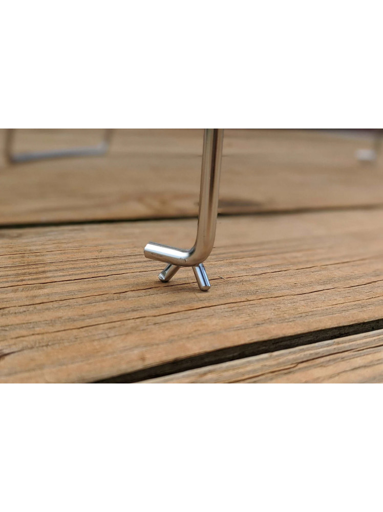 Міцна і стійка конструкція. Підставка має три точки опори: дві ніжки розташовані по краях, третя розташована поруч із ручкою-решіткою, що забезпечує стабільність і зручність у використанні.